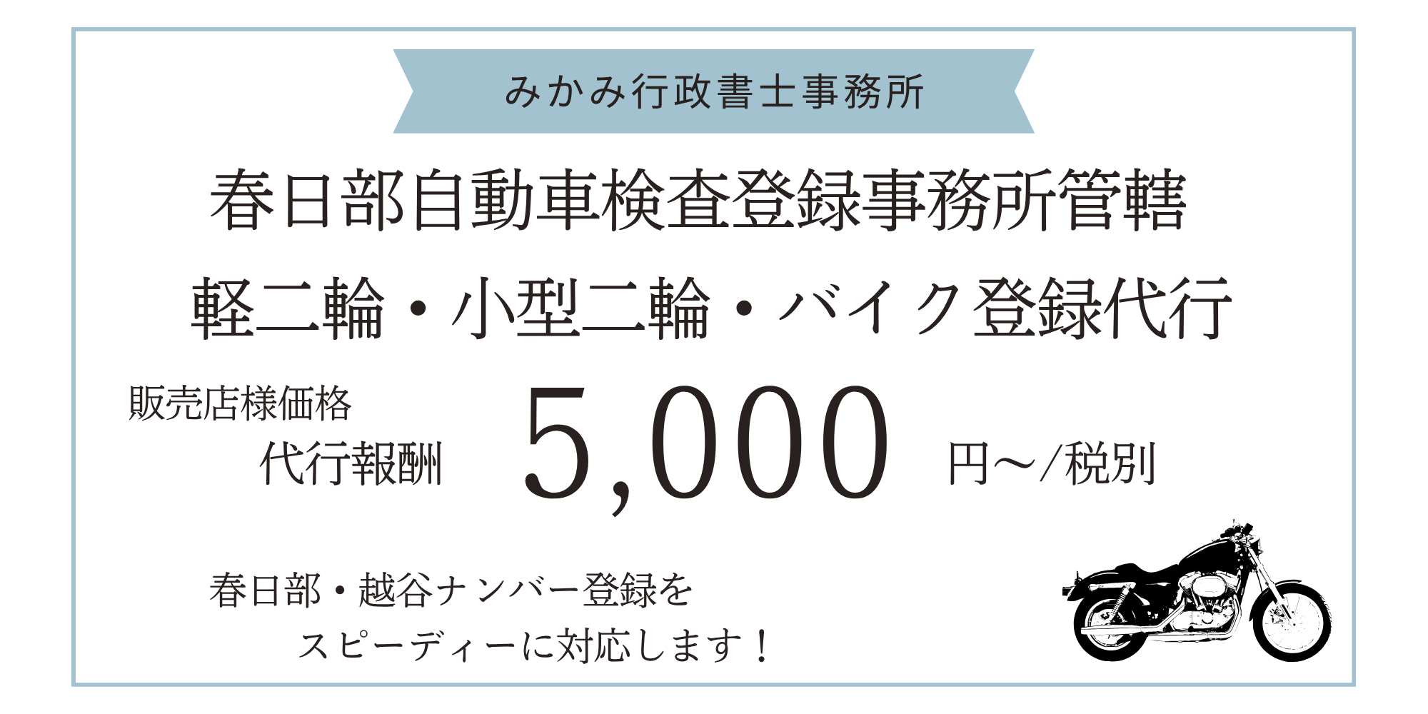 草加市での軽二輪・小型二輪バイクのお手続きは名義変更・登録代行専門の